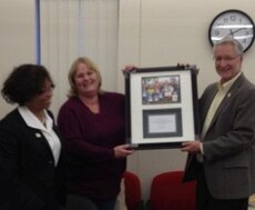 The photo (see nearby) shows AFT-Michigan President David Hecker and Secretary-Treasurer Lois Lofton Doniver with Moore during the presentation of the plaque. Hecker and Moore didn't return requests for comment.