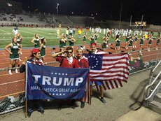 The students waved the flag at a Sept. 9 football game at Houseman Field between Forest Hills Central and Ottawa Hills. The students also brought a Donald Trump for President banner to the event.