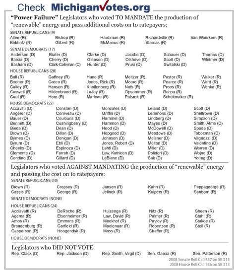 On Sept. 18, the Michigan Legislature overwhelmingly approved Senate Bill 213, which mandates that by 2015 electricity suppliers acquire at least 10 percent of their power from "clean" and "renewable" sources and pass along the additional costs to their customers.