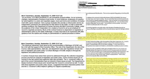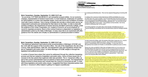 In a Sept. 13 e-mail, Ciaramitaro wrote about the MHBCCC: "In many ways, this is an experiment with little guidance from statute and virtually no administrative or judicial precedent to follow. ... The Interlocal Agreement came about at the recommendation of Michigan AFSCME and the UAW with the support of the Executive Office."