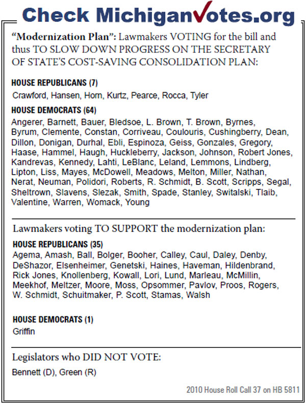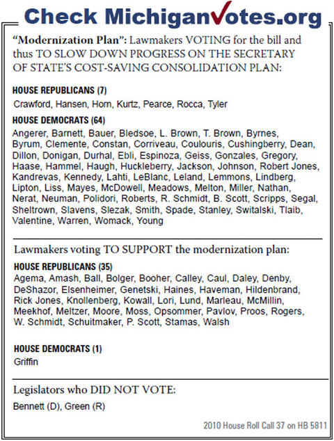This most recent effort to stymie the modernization plan, House Bill 5811, was approved on a vote of 71-36, despite objections of and formal opposition from the Department of State. Though blocking modernization has mostly been a Democrat-supported effort, seven Republicans were among the 71 "yes" votes.