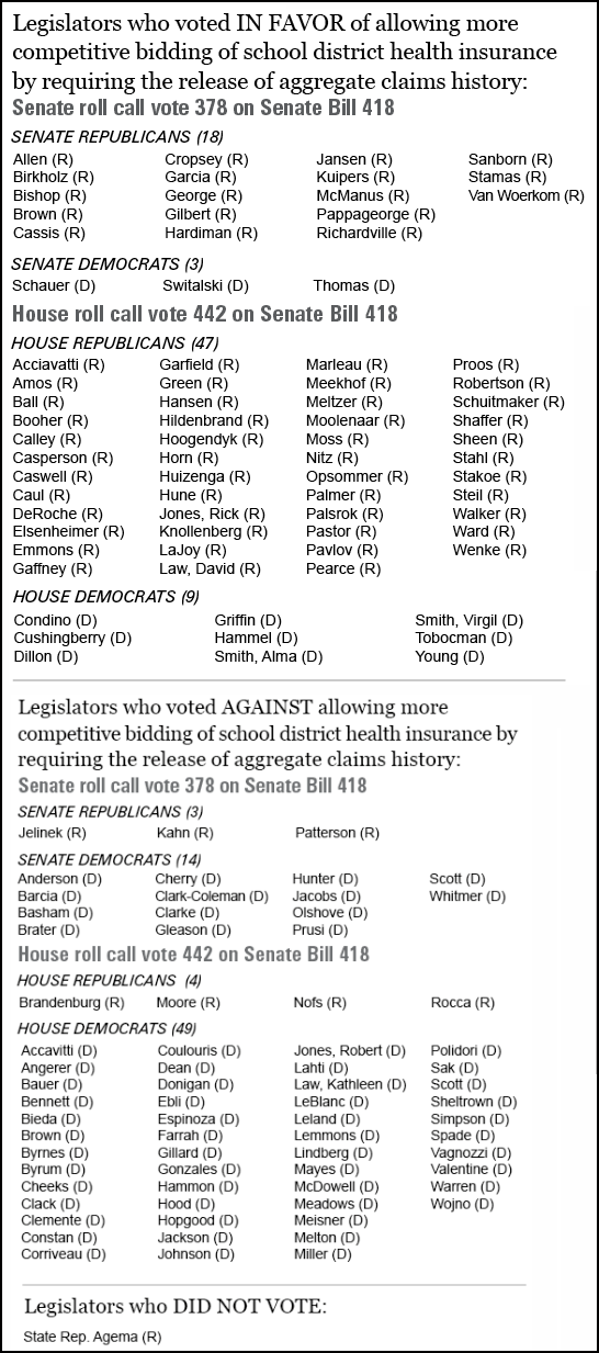 - During 2007's budget battle, he was one of two GOP senators to vote against eliminating certain unusually generous pension benefits in the public school retirement system. He was also one of three GOP senators to vote against a bill that made it easier for other insurance companies to submit competitive bids for public school health insurance policy contracts. Full details at www.MichCapCon.com/9136.
