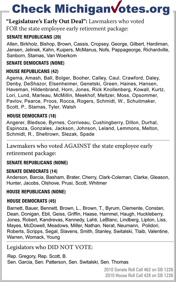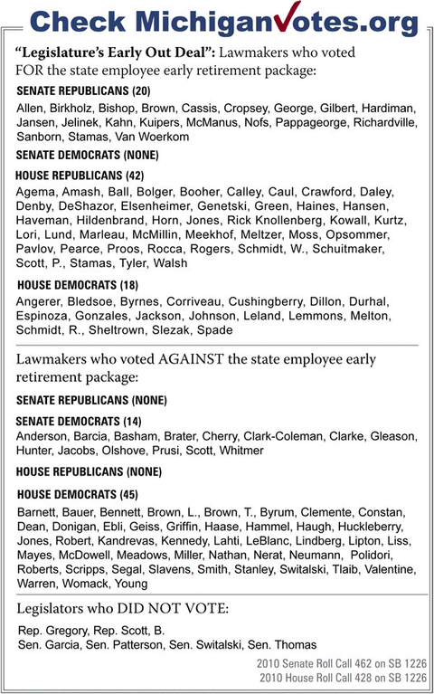 Legislators celebrated a “victory” in September by passing a state employee early retirement scheme that generates upfront savings of just under $140 million (but at the expense of higher costs down the road). This will be used to fill in a gap between their desired 2011 government spending vs. expected revenue (aka “the deficit”). The measure lets politicians get back to the campaign trail, but in the long-term may cost taxpayers more overall, despite some “rosy scenario” projections that claim otherwise.