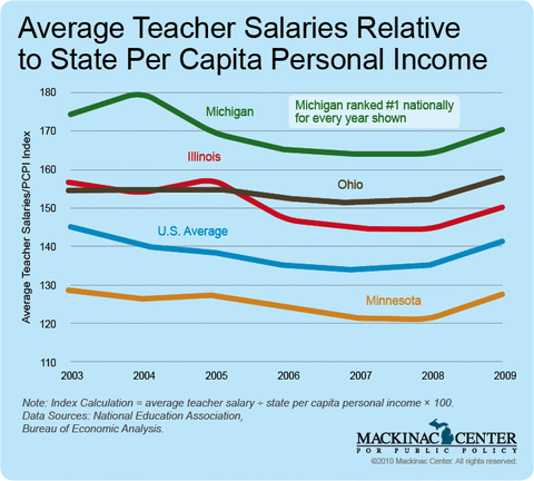 - From 2003 to 2009, Michigan teaching salaries were the highest in the nation when controlling for state per capita personal income.
