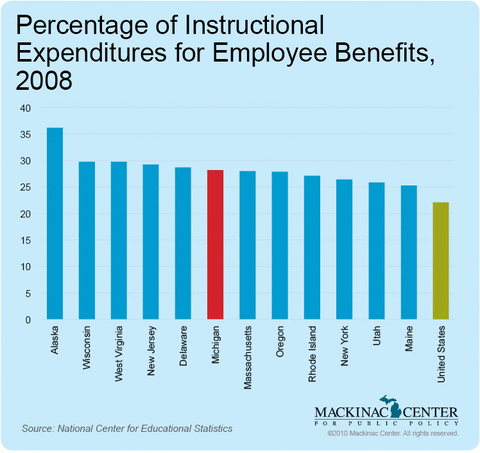 - Michigan ranks 6th in the nation for percentage of instructional spending on employee benefits (28 percent).