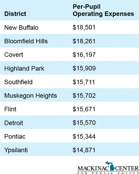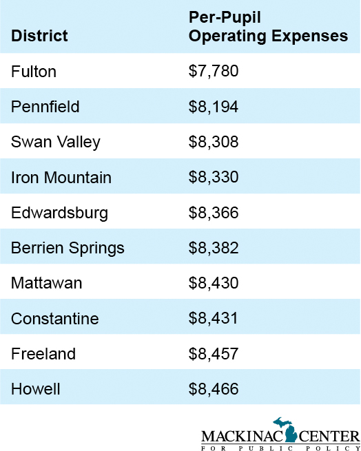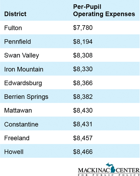 Interestingly, the lowest-spending charter school was Virtual Learning Academy of St. Clair County. This alternative online education program spent only $4,723 per pupil. The innovative academy was featured in a study just published by the Mackinac Center, “Virtual Learning in Michigan’s Schools.”