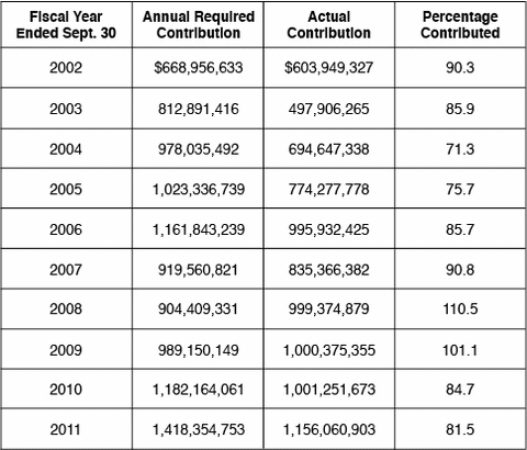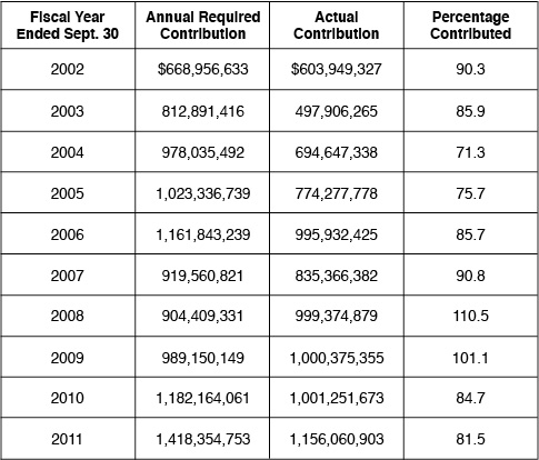 Source: "Michigan Public School Employees' Retirement System: Comprehensive Annual Financial Report for the Fiscal Year Ended Sept. 30, 2011," (Michigan Office of Retirement Services, 2011), 47, http://goo.gl/hyUcr (accessed Feb. 15, 2012).