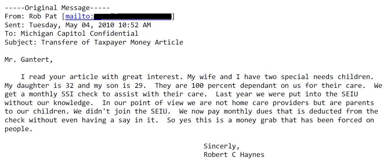 Haynes contacted the Mackinac Center because he thought it was wrong that the Service Employees International Union was taking money from his family.