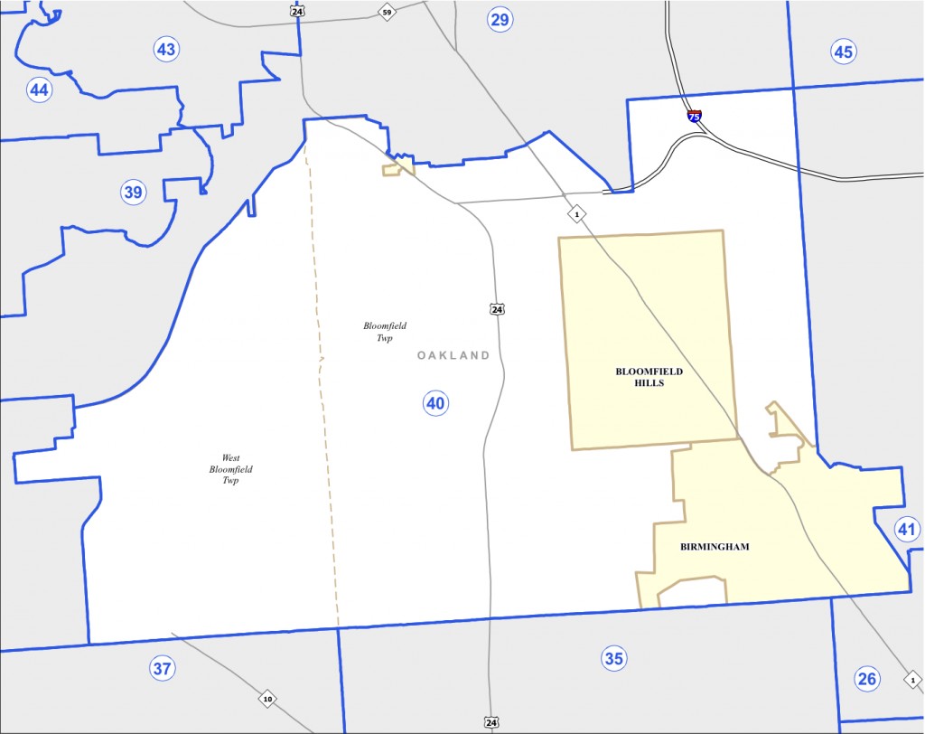 Rep. McCready represents the 40th House district, which is in Oakland County. It includes Birmingham, Bloomfield Hills, Bloomfield, and part of West Bloomfield. He is in his first House term. The 40th House district has a 55.5 percent Republican base.
