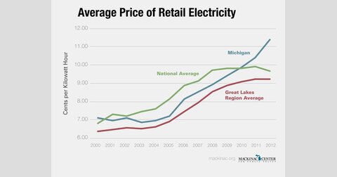 The use of Texas as an example of failed deregulation due to its impact on prices in the Lone Star State is puzzling. As outlined in a recent report by the Michigan Public Service Commission, the average residential retail price of electricity in Michigan increased faster than Texas's over the last decade and remains significantly higher. Texas's rates were about eight cents per kilowatt hour in 2000 and about 11 cents in 2013. Michigan's rates were about 11 cents per kilowatt hour in 2000 and increased to almost 15 cents in 2013, the highest in the Midwest region and 11th highest in the nation.