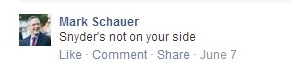 In a meme on his Facebook page, Democratic gubernatorial candidate Mark Schauer posts this image:
