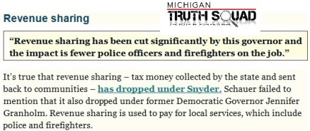 The Truth Squad, the Center for Michigan’s “fact checkers,” made a mistake when fact-checking a claim by Democratic gubernatorial candidate Mark Schauer about revenue sharing under Gov. Rick Snyder. The purveyors of truth write: