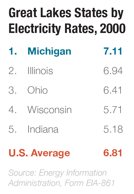 Michigan first authorized a choice program with Public Act 141 of 2000. At the time, Michigan’s electricity rates were higher than the national average and higher than any nearby state.