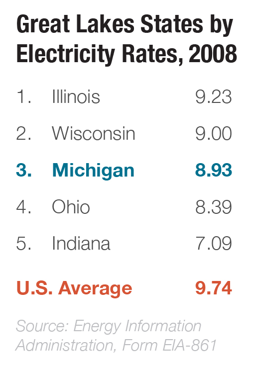 Michigan rates quickly became less competitive after the cap was imposed. By 2009, Michigan had soared back above the national average. Michigan electricity customers now pay more than customers in any of the surrounding states, and 6 percent more than the national average. Today Michigan residents, employers, and the state economy as a whole are paying a high price for protecting the monopoly status of its large utilities.