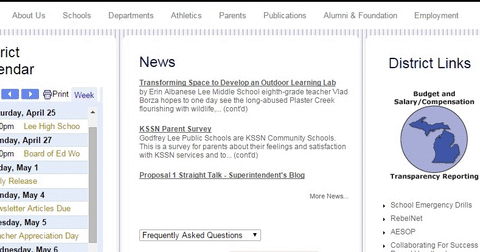 The "News" section of the Godfrey-Lee Public Schools website features a link to Superintendent David Britten’s personal blog, “Superintendent's Notes," which includes an article, "Proposal 1 Straight Talk."