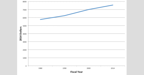 In all, Campos calculates that in real dollars total state and federal subsidies have more than doubled, while funding per pupil has increased almost 30 percent (see image).