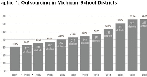 If it follows through, the Lansing district will join nearly 260 others across Michigan that have privatized custodial services, a trend documented by the Mackinac Center’s annual privatization survey. In 2003, only 6.6 percent of Michigan districts contracted for custodial services. By 2014, the number had climbed to 47.5 percent, including some of the state’s largest districts, such as Detroit, Ann Arbor, Rochester, Troy, and Kalamazoo. Moreover, nearly 90 percent of these districts reported being satisfied with their third-party vendors.