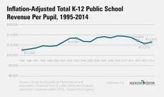 When all revenue sources are included, public schools in this state received $11,040 per pupil in 1995. The figure today is $12,570, or $1,530 more per student, a 13.8 percent increase even after inflation. (The figures are stated in 2014 dollars.)