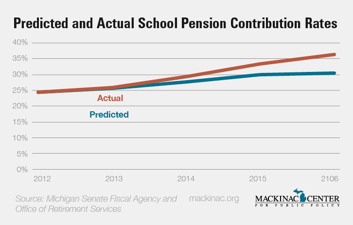 These projections for the Michigan Public School Employees Retirement System went off the rails quickly and have underestimated real contribution rates since 2014.