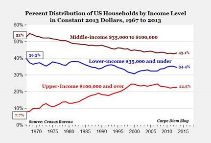 Where did they go? To the upper-income category, which increased from 8 percent of the population to 23 percent. Here is his chart summing up the changes: