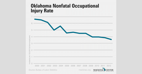 By December 2014, 45 percent of America’s nonfarm jobs were in right-to-work states and the fatal work injury rate had dropped to 3.3.