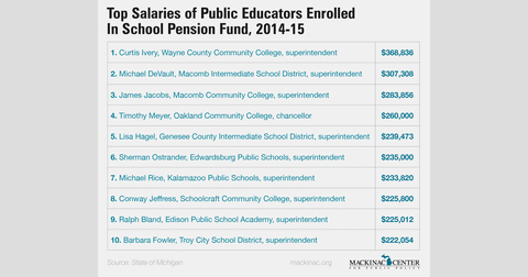 - Michael DeVault, Macomb Intermediate School District, superintendent: $307,308
