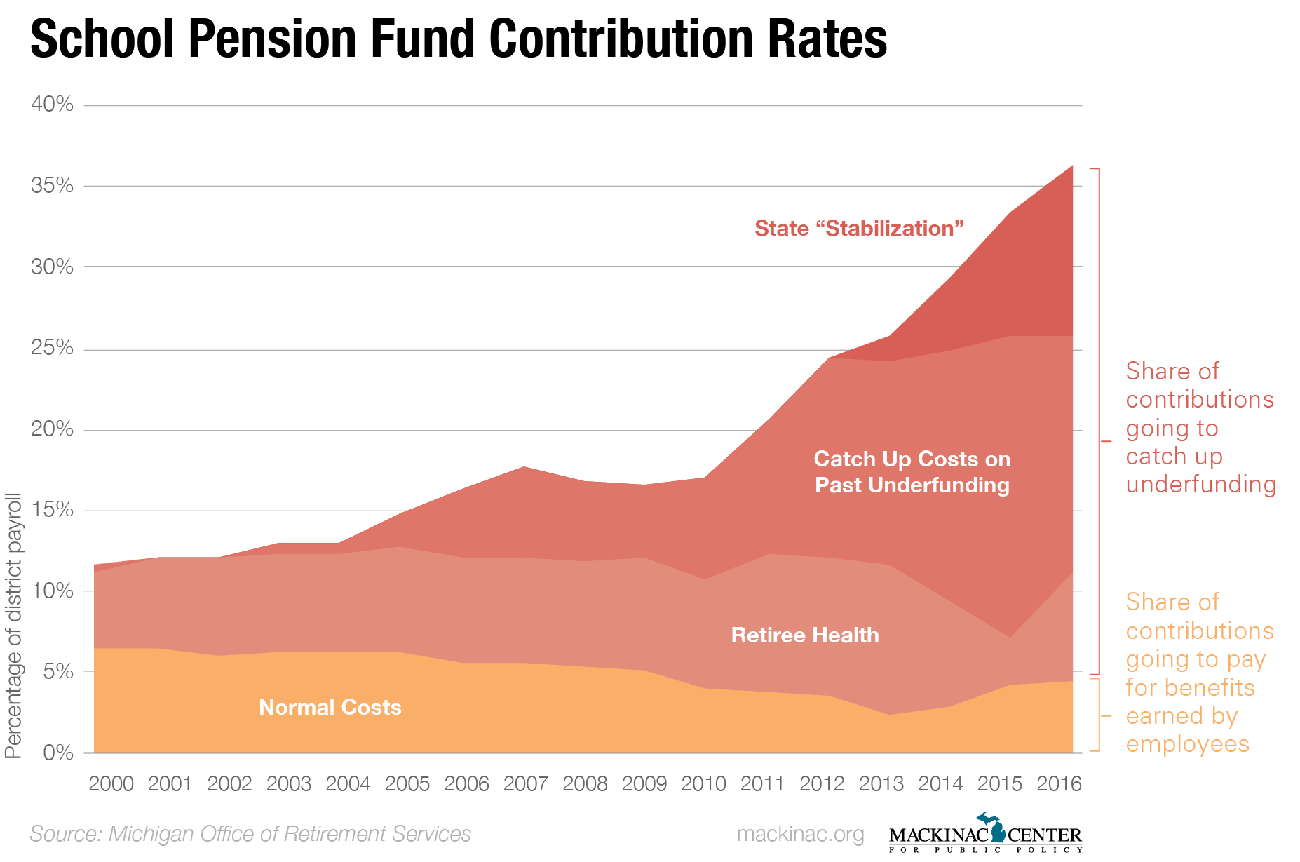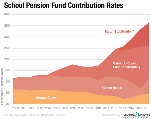 4. More than one-third (36 percent) of Michigan school payrolls are absorbed by the pension system.