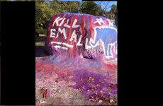 Another side of the rock also had a donkey, the mascot of the Democratic Party, with two stars around it and no words. And another side had a profanity that says "F*** America" on it.