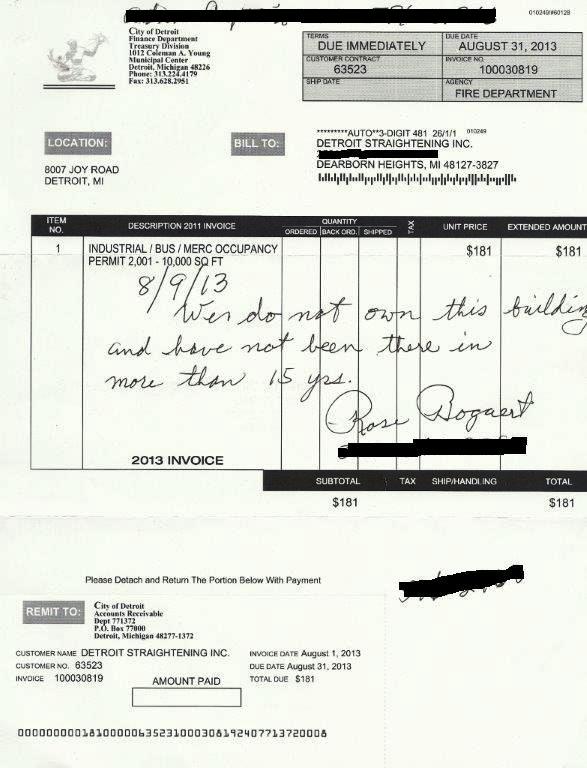 Detroit wanted money for fire permits, for inspections and gas storage, awning permits (long after the aluminum awnings had been torn down), building occupancy and personal property fees.
