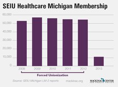 During those years, the SEIU Healthcare Michigan boasted that it was the fastest growing union in the state. However, according to the union's LM-2 report, its membership has fallen to 10,918 since the home-based caregivers were freed from the forced unionization on March 1, 2013.