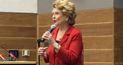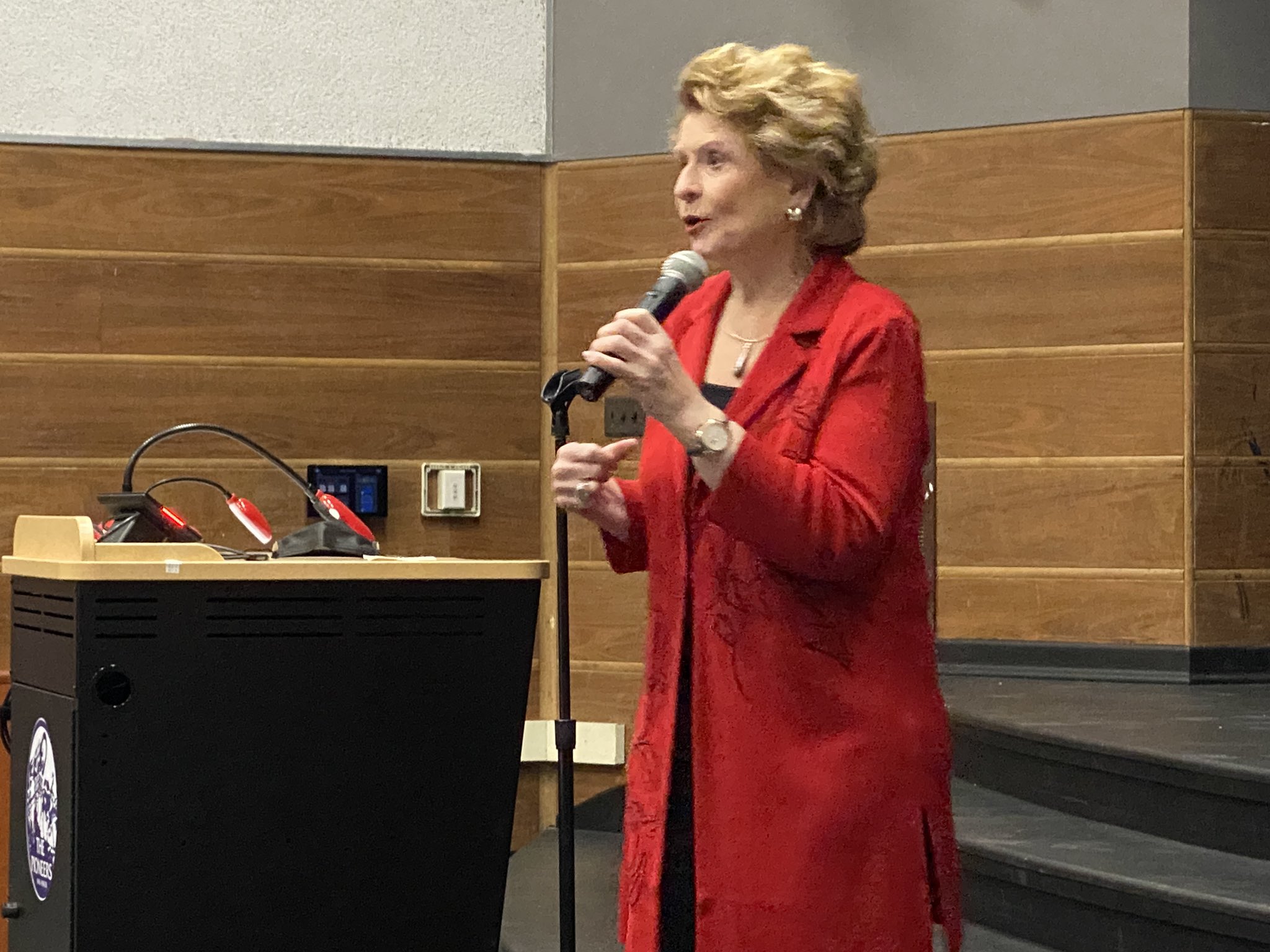 Stabenow maskless as she speaks to masked Ann Arbor students