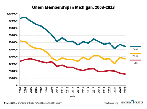 There have been repeated claims from unions and in the media that unions are in a resurgence. But the data doesn’t back that up. Union membership is the lowest-ever level recorded across the United States. In Michigan, union membership is at the lowest level in at least 100 years.