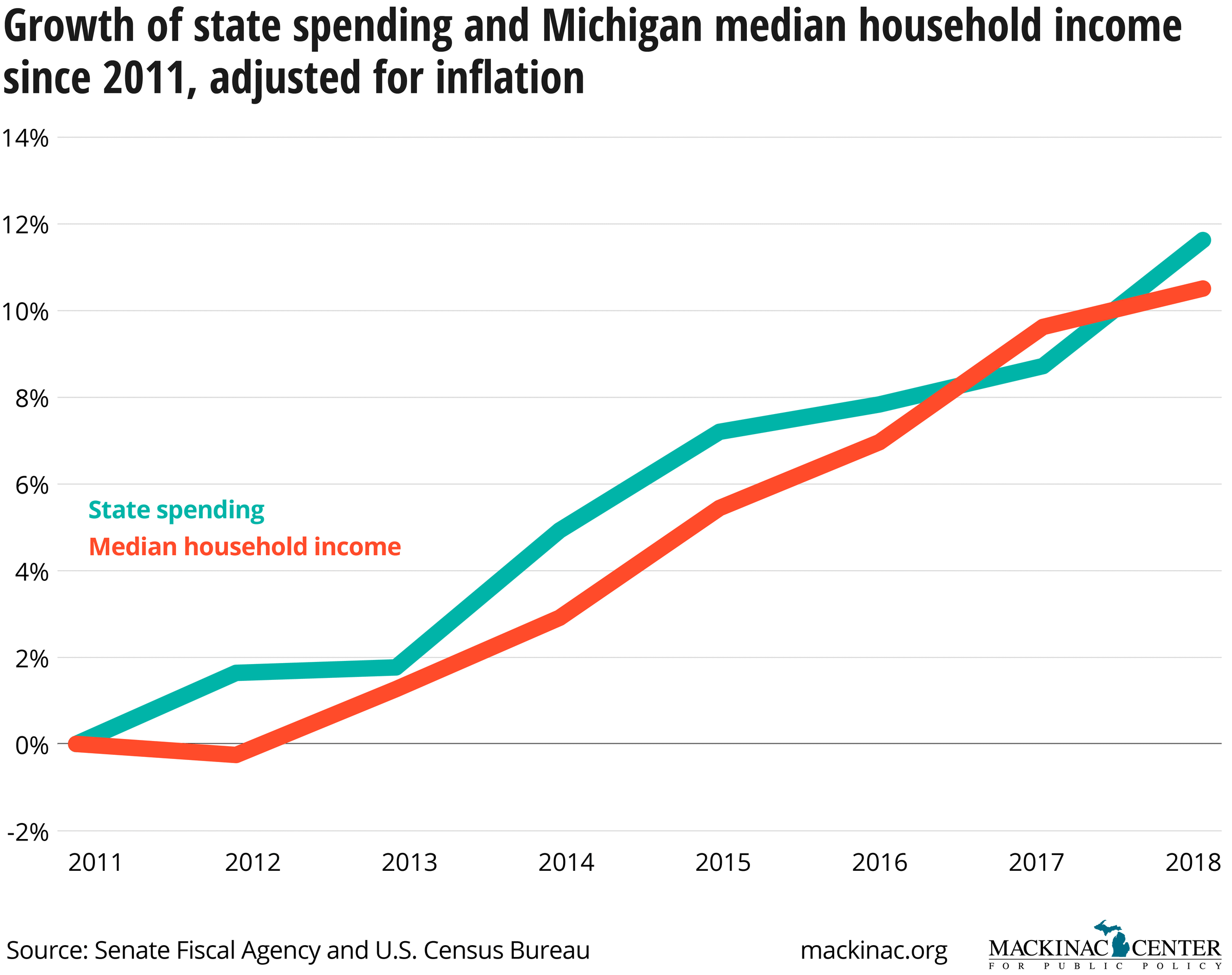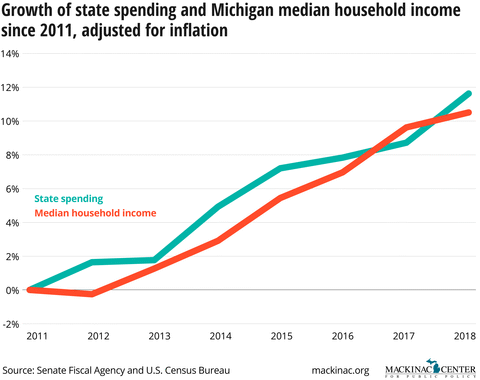 These revenue trends are an important reminder: While tax policy discussions are important, the biggest driver of state revenue comes not from the changes made in tax policy. It comes, rather, from people working more and earning more, and from the businesses in the state finding better ways to provide people with what they want. Michigan has been improving, and that improvement has made it easier to accomplish lawmakers’ budget priorities.