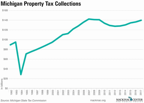 The amount of property tax revenue collected by all forms of tax jurisdictions in the state rose from $12.8 billion in 2012 to $14.0 billion in 2017, according to a recently released State of Michigan report.