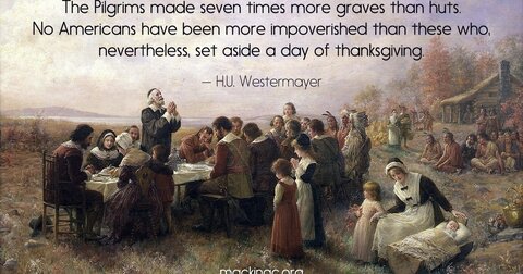 As H.U. Westermayer noted, “The Pilgrims made seven times more graves than huts. No Americans have been more impoverished than these who, nevertheless, set aside a day of thanksgiving.”