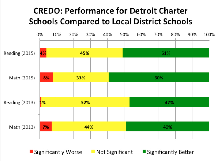In contrast, the latest research on Detroit education by Stanford University’s Center for Research on Education Outcomes (CREDO) shows how much better Detroit’s charter schools have performed compared to the city’s unionized public schools. CREDO says Detroit's charters are a model other communities should follow.