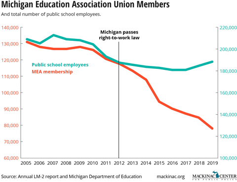 The MEA just released its own annual report last month, and it confirms what the union officials feared. The report also reveals that the union lost another 6,397 members in the past year. Since right-to-work became law, the MEA has lost 38,790 members.
