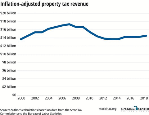 Of all of the state and local taxes in Michigan, property taxes raise the most revenue. And 2018 was a big year for property taxes. Total property tax revenue increased from $14.0 billion in 2017 to $14.6 billion in 2018, a 2.1% increase above inflation.