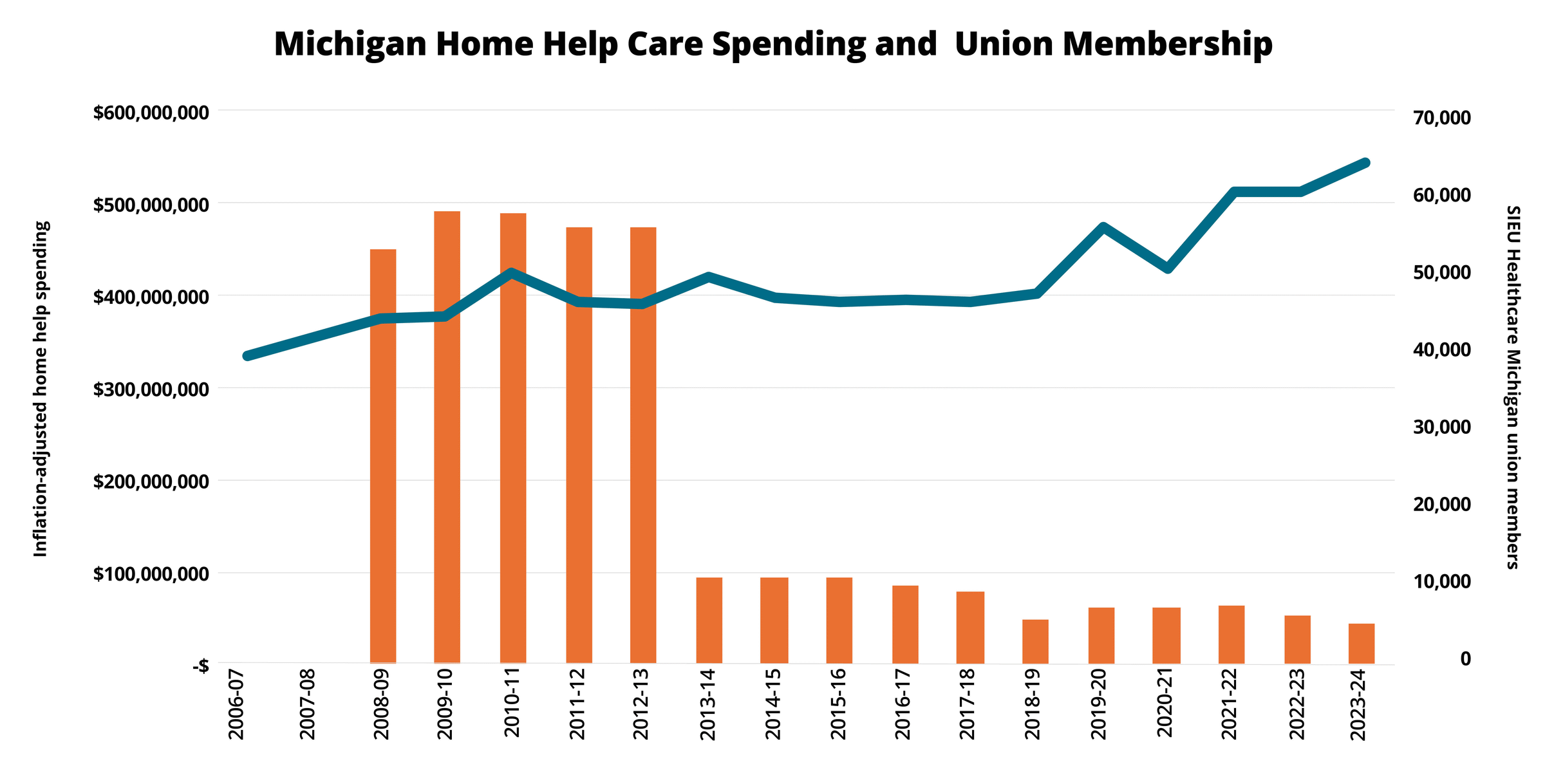 As union membership plummets, home help care spending in Michigan has skyrocketed