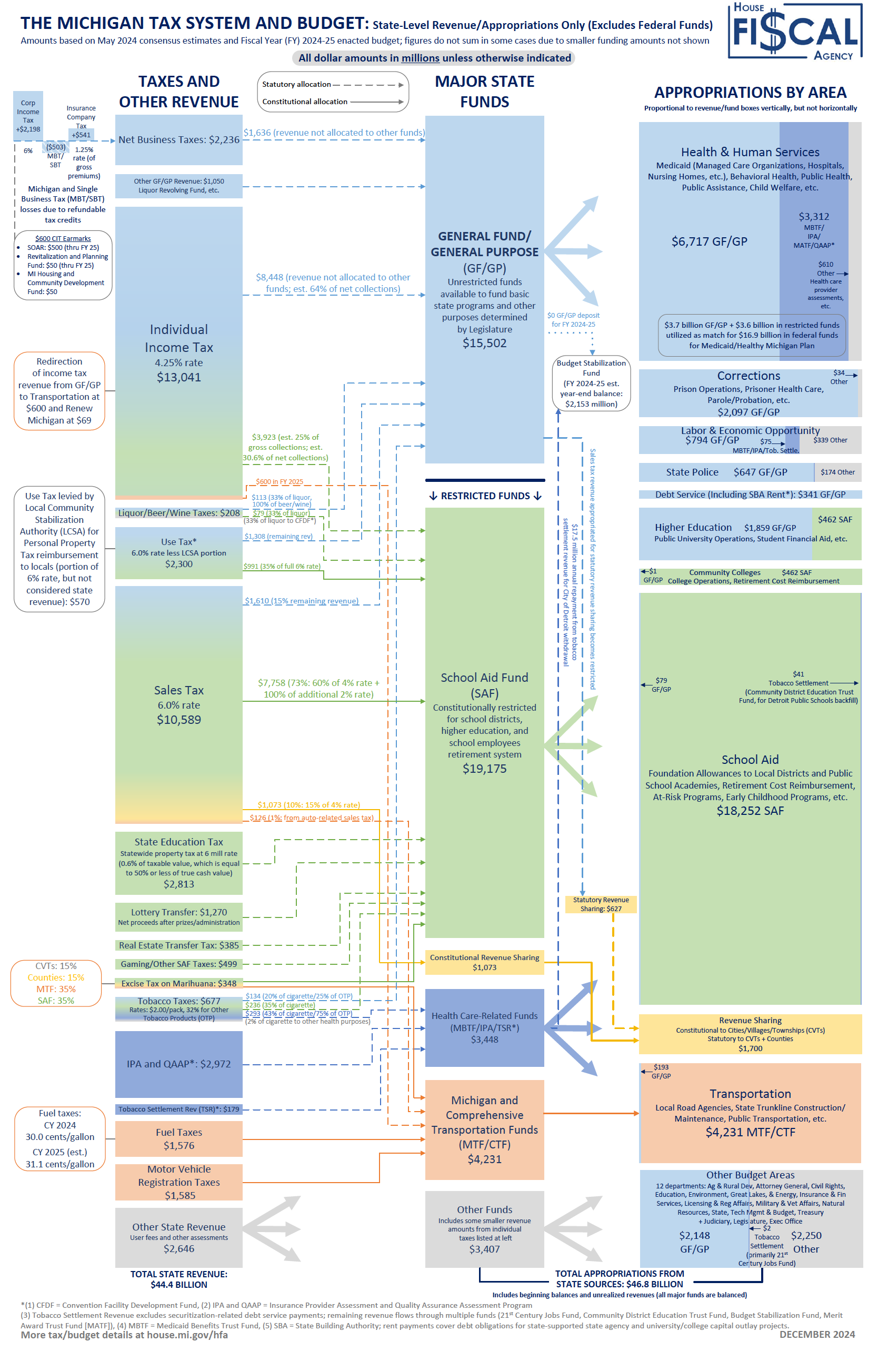House Bill 4187 aims to stop the practice of dedicating corporate income tax revenue to the Strategic Outreach and Attraction Reserve, a program meant to attract large projects via providing corporate subsidies. The first $2.2 billion in revenue generated from the move would be split three ways: 50% to county roads, 40% to city and village roads and 10% to trunk lines.