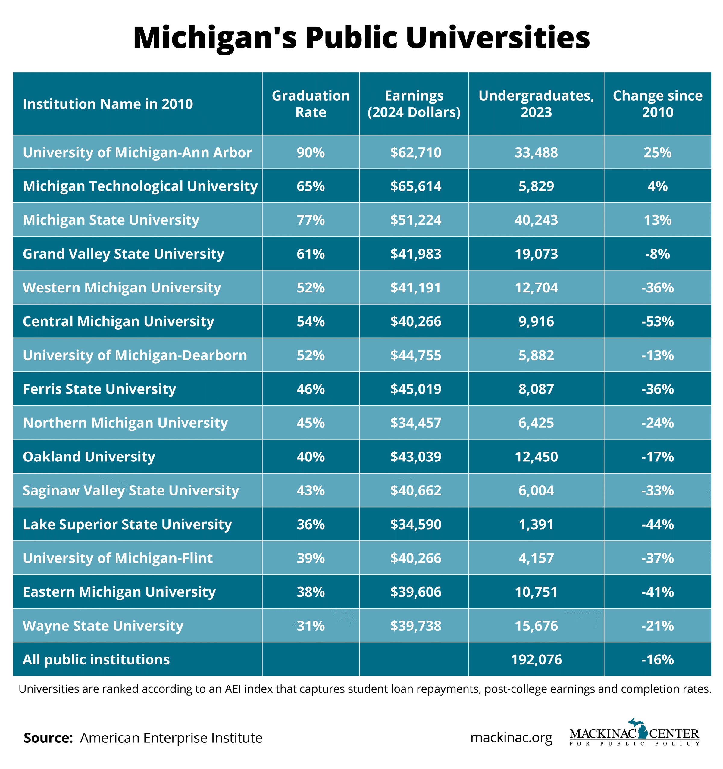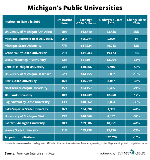 Enrollment in undergraduate programs across the country has declined by nearly 20% since 2010, according to “Learning with their feet,” a report written by American Enterprise Institute senior fellow Preston Cooper. The national trend, repeated in Michigan, favors institutions whose students are more likely to graduate and pay their loans.