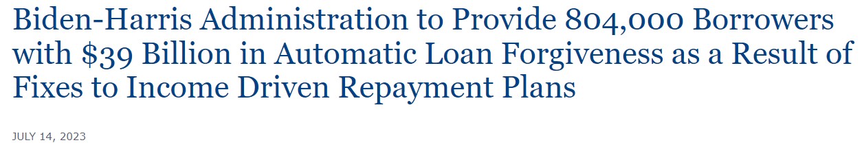 “For far too long, borrowers fell through the cracks of a broken system that failed to keep accurate track of their progress towards forgiveness,” U.S. Secretary of Education Miguel Cardona said in a statement accompanying the announcement. “By fixing past administrative failures, we are ensuring everyone gets the forgiveness they deserve, just as we have done for public servants, students who were cheated by their colleges, and borrowers with permanent disabilities, including veterans.”