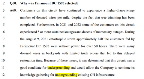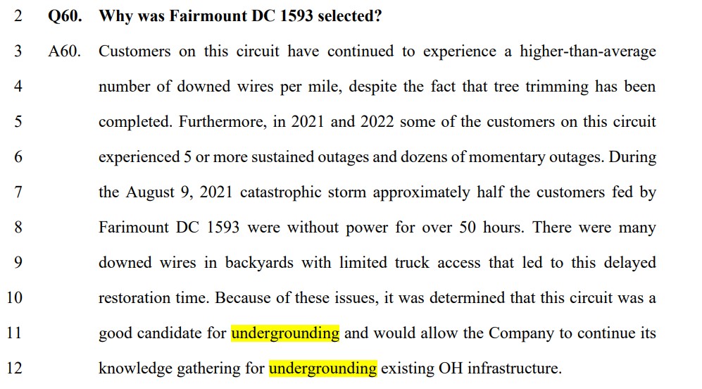 The company chose the Fairmount circuit because the area it serves suffered heavy power outages, despite extensive tree-trimming.
