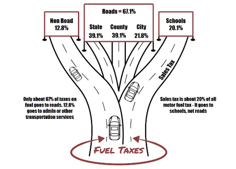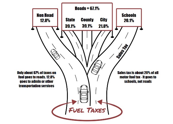 According to the Michigan Petroleum Association, only about 67% of fuel taxes fund road work, while 12.8% covers administration and transit services, and 20%—the sales tax share—goes to schools instead of roads.