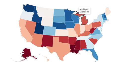 Only in health care (20) and opportunity (21) did Michigan crack the top half of states.