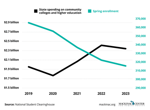 Michigan has increased spending on higher education by 20% over the past four years, only to see enrollment in state colleges decline by more than 50,000 students.