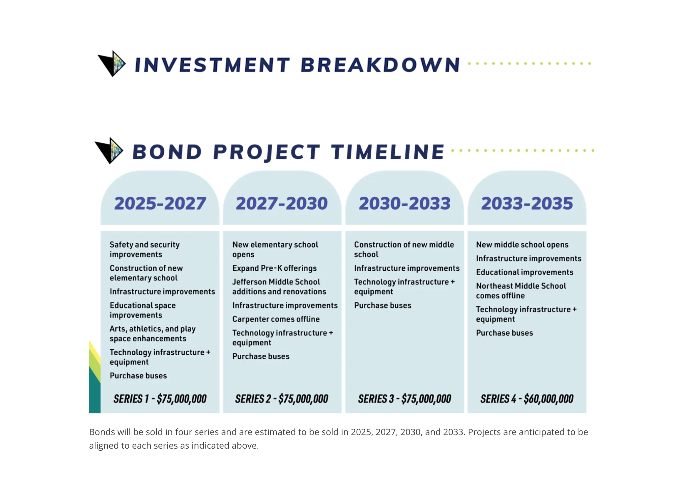 The Midland district wants to construct a new elementary school and a new middle school, among other things. If voters approve the millage, the district would sell bonds in four series. About 54% of the spending would go to new construction, according to the district.