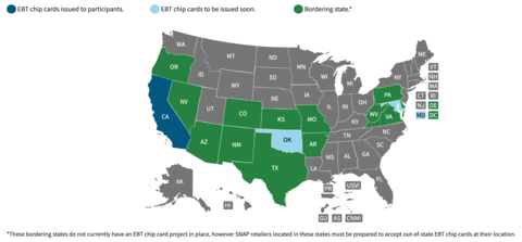 Ten years later, the government is switching to chipped cards for the Supplemental Nutrition Assistance Program in three states — California, Oklahoma and Maryland, according to the United States Department of Agriculture.