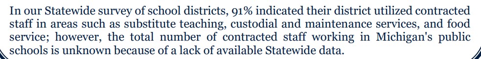 The audit found that school districts contracting privately for non-instructional services, and even for substitute teachers, is widespread in Michigan.