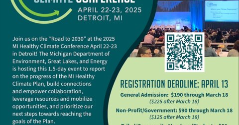 Michigan’s Department of Environment, Great Lakes, and Energy will hold its 2025 Healthy Climate Conference on April 22-23 at the Huntington Place in Detroit. The department’s plans call for the state to reach carbon neutrality by 2050.